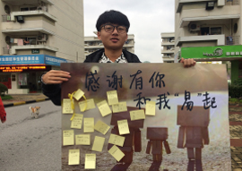 我们在生活园区国旗广场现场征集感恩节的活动寄语,将活动寄语写在便利贴上,为家人、朋友和身边的人写上自己最诚挚的谢语。我们要以一颗感恩的心对待生活,将极其平凡却又深厚的感情留在他们和我们自己的心里,成为独一无二的美好记忆。