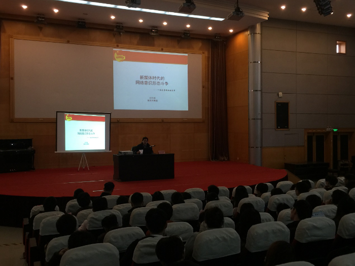 讲座开篇张岱松通过举例,生动形象地为学员说明了新媒体快速发展对于信息传播的种种影响,提醒广大同学在通过网络获取信息时要保持原则性和警惕性,不要被错误的信息误导。他通过展示西方媒体对于我国一些恶性事件的误导性报道,提醒学员要认清个别媒体在报道中的双重标准。另外,张老师提到最近在国内甚嚣尘上的“历史虚无主义”思想,为学员解释了国内一些误解、抹黑英雄人物的言论,提醒同学要树立正确的思想,不要被媒体的言论左右,对于我国做出贡献的英雄人物,保持崇高敬意和清醒的认识。最后,张岱松阐述了国内一些媒体对于新闻借题发挥并对标题造谣,提醒学员在获取信息时要注意报道的逻辑性和合理性,要有自己的正确判断,树立正确的价值观。