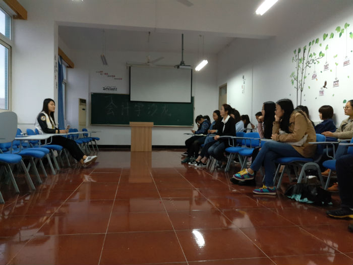 活动邀请了一些参加过会计从业资格证考试的大三同学参与讨论。大一大二同学们在和大三同学的交流过程中积极发言,探讨问题。很多准备报考会计从业资格证的大一大二同学都存在许多共性的问题,如报考会计从业资格证是否有利于考研,报考会计从业资格证的流程和需要做哪些准备工作,等等。大三同学认真的回答了大一大二同学们的问题,并做出了详尽的解答。