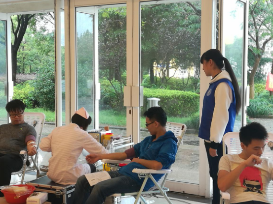 活动伊始,大量同学踊跃前来参加活动,队伍越排越长,但是在志愿者们的指挥下,同学们排队井然有序,大家充满热情的同时不失秩序,活动进行地如火如荼。一位位准备献血的同学脸上洋溢着温暖的笑容,志愿者们也受到感染更加积极热情地投入到工作中,温暖散发在整个学院内。献血后,有同学体力不支感到头晕,志愿者们赶忙上前搀扶,并递上热红糖水和补充能量的巧克力等。在医生护士、指导老师和志愿者们的共同努力下,活动取得了巨大成功并圆满结束。