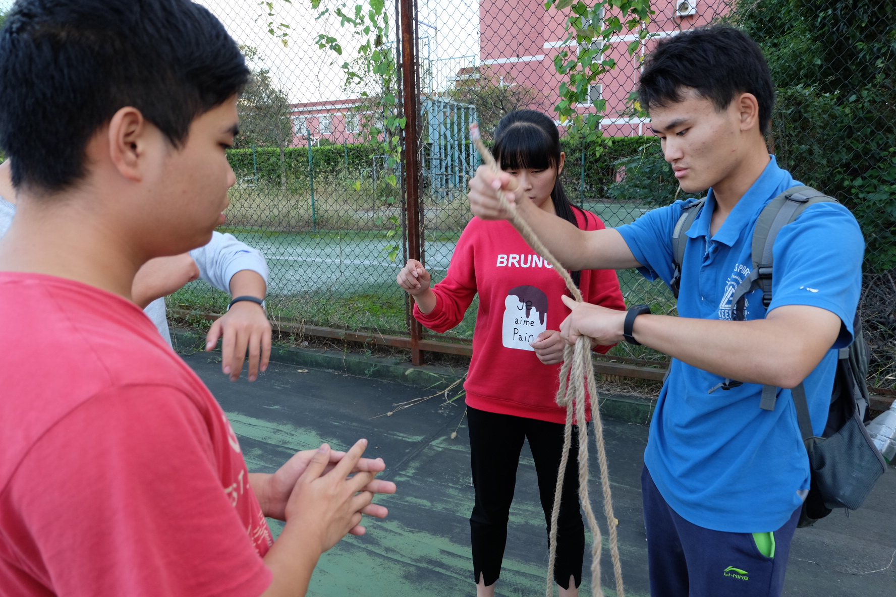 决赛分为四项比赛,第一项比赛的地点在情人坡,比赛内容是模拟伤口包扎和心脏复苏,在这项比赛中,数理学院对自己的高标准、严要求甚至让工作人员都无比佩服他们的比赛精神,依次到场的队伍也都有条不紊地帮“受伤的同学”进行包扎,他们很享受帮助别人的过程,并且表示还想参加明年的安全知识竞赛。第二项比赛的地点是南篮球场,比赛内容是制作逃生绳结,参赛队伍在工作人员的培训下,细心地制作逃生绳结。第三项比赛的地点是文化活动中心,比赛内容是寻找紧急逃生出口并合影,各个参赛队伍在赛场上飞奔,争分夺秒,仿佛真的在和时间赛跑,但一张又一张搞怪的自拍照又无不显示出竞争带给他们的乐趣。