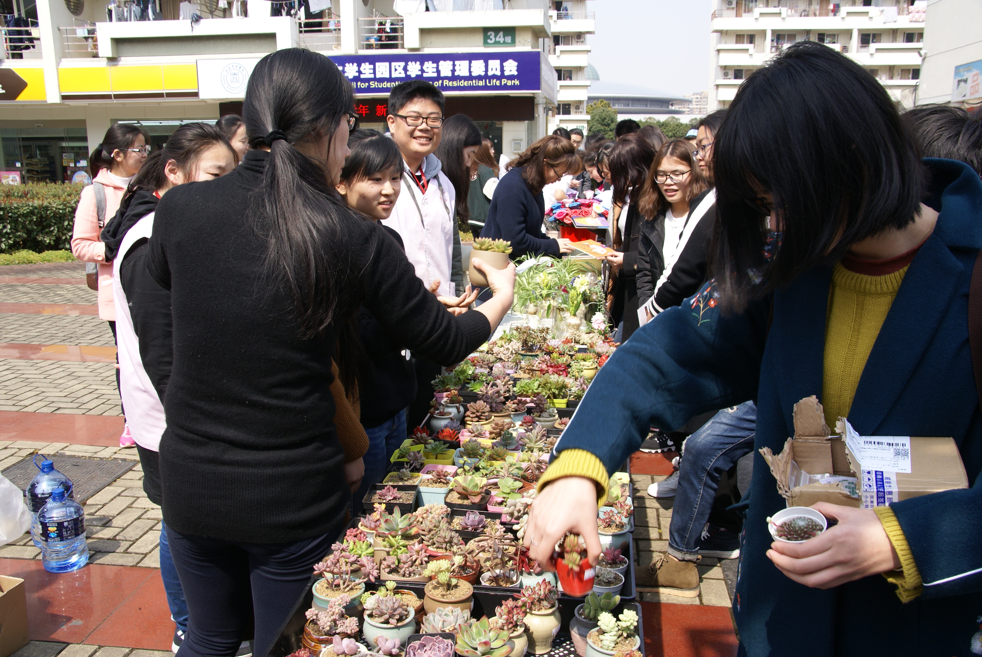 志愿者们分组在国旗广场摆摊设点,通过售卖精美的盆栽和手工纸花筹集资金,奉献爱心,“我和你”助残社亲手制作的纸花和培育的盆栽受到同学们的欢迎。现场的志愿者还为同学们介绍了盆栽的名称和寓意,此次活动收到的钱款将捐给有助残社的残疾人。现场还设有“快乐航班”支教和惠南地铁站志愿者报名点,开展情景模拟有奖竞答活动,积极参与活动的同学们都获得了志服部精心准备的雷锋日特制明信片作为纪念,活动现场气氛十分活跃。