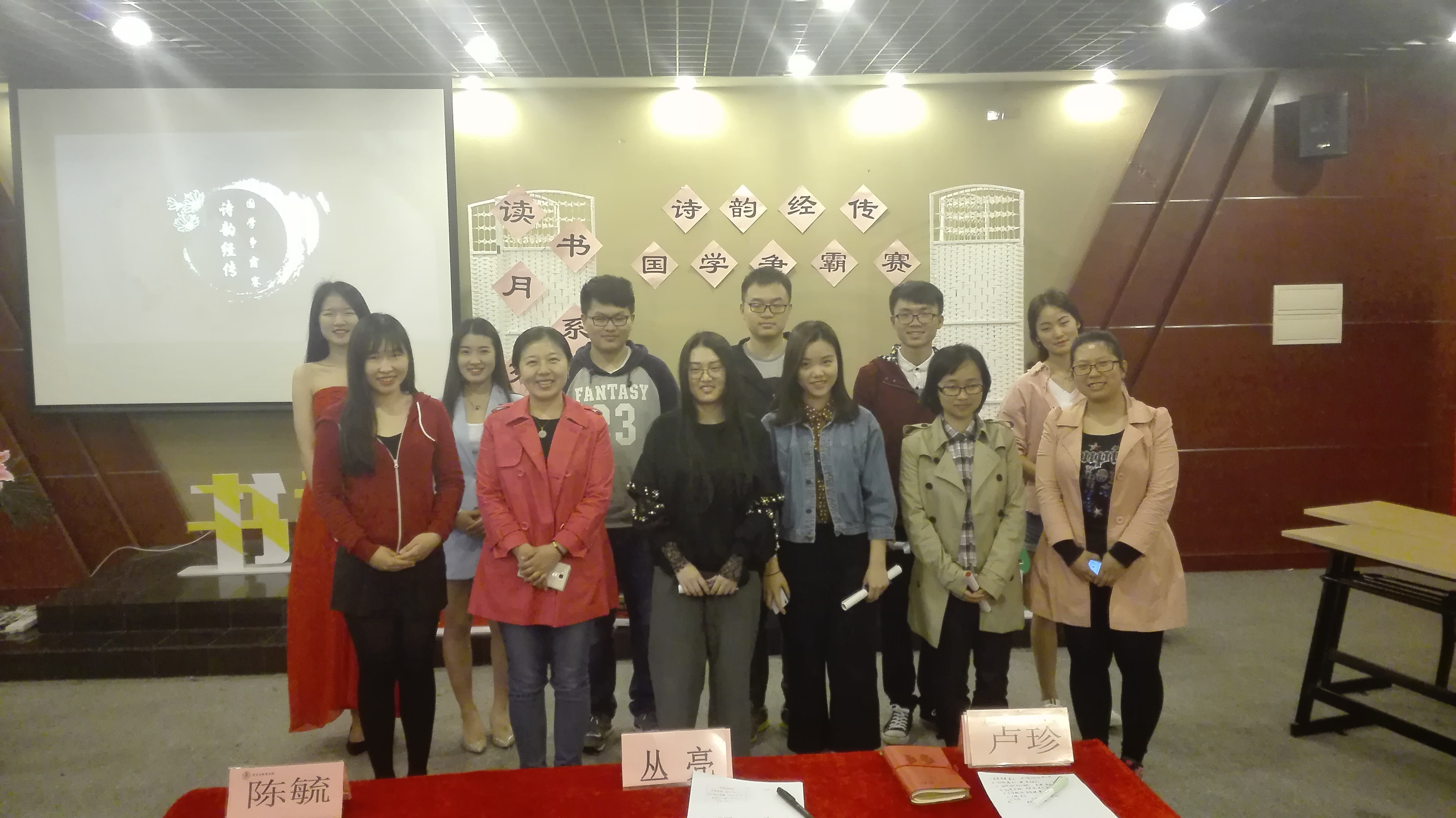 4月18日下午,读书月系列活动之诗韵经传・国学争霸赛于崇德楼214举办,本次比赛邀请到了英国上市公司官网365党委副书记丛亮老师,英国上市公司官网365团委副书记卢珍老师,2015级辅导员陈毓老师作为评委。