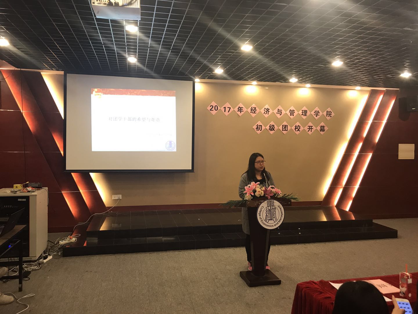 李彦雯首先介绍了本次初级团训培训的课程安排及课程要求。记卢珍从初级团校的意义出发,依次向学员们介绍了团学的基本构架以及团学工作规划蓝图,并讲述了对团学干部的希望与寄语。