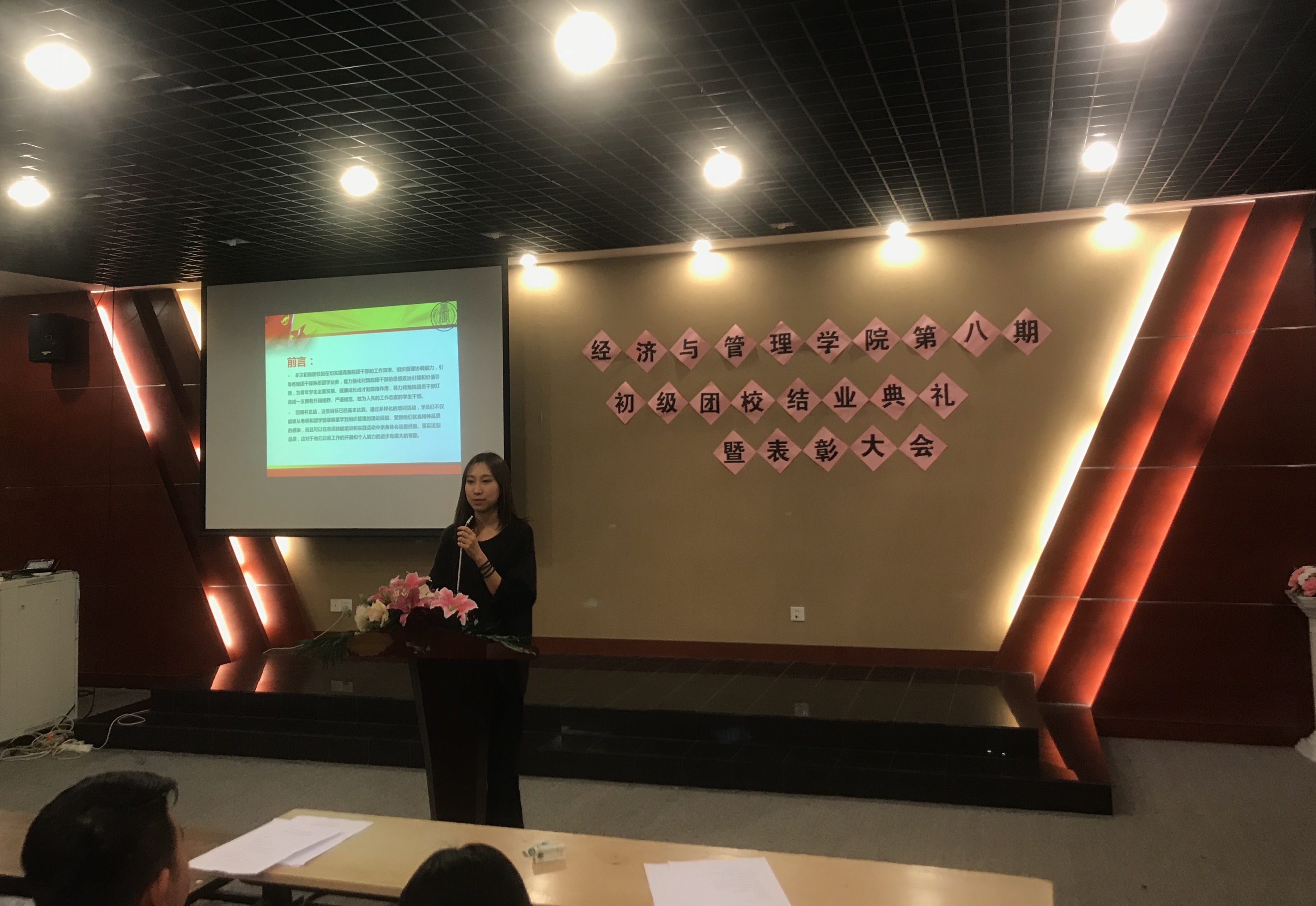 通过优秀小老师和优秀团员的表彰环节,同学们看到了他们身上优秀的品格,以他们为榜样进一步地完善自己。这个活动使每一个人都向优秀团员靠齐,营造一种优良的氛围。分团委书记齐永晓肯定了本次初级团校的各项课程和活动;讲解了群团改革背景下经管团学和各支部的工作方法和奋斗目标;鼓舞学员们的昂扬斗志,利用青春年华塑造更好的自己、建设更强更棒的经管团学。