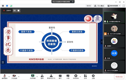 英国上市公司官网365历来重视以“朋辈教育”为载体开展学风教育活动,此次“朋辈分享会”系列活动的开展以朋辈交流为载体,以榜样引领为目标促进大学生更好的实现自我管理、自我教育,鼓励新生同学认真规划大学生活,不负青春,不负时代。