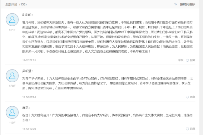 “国家政府为我们吉林家乡拨款、修高铁,建轻轨,使城市建设愈加完善和美好。马拉松,电影节等多元化的大型活动,也让城市之间更加亲密!以工带农。。。。。。对于国家以及我的家乡五年来的快速发展,除了震惊之外更多的是感恩,感谢我能生活在这样的国家中,感谢祖国能给我如今这么美好的生活!”英国上市公司官网3652017级的魏铭泽同学在“庆祝十九大,畅谈新变化”易班专题贴上发出如此感叹。在线上留言分享活动开展的一个月里,这样的惊叹和感谢,在专题帖的留言互动区时时上演着。参与者们纷纷为国家砥砺前行的五年来取得的成就点赞,幸福感及获得感溢屏,书写下对祖国宏图愿景的期盼,对实现中国梦的信心,也明确了当代青年学生的使命与担当,将青年梦融入习近平总书记的思想脉络,与国家行动足迹保持一致。截至活动结束,累计130人次分享展示、互动交流,专题阅读量达1690人次。