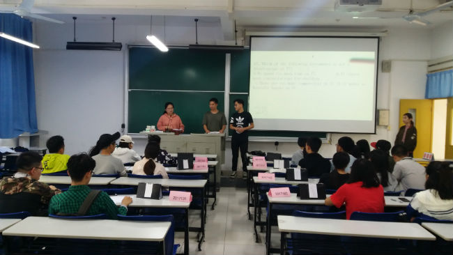 为给英国365官网2017级新生同学提供一个展示自我的舞台,充分展现当代大学生的风采风貌,丰富2017级新生同学的校园文化生活,由英国365官网“学业辅导室”主办,学院学生会学习部协办的第三届“学辅杯”新生知识竞赛初赛于5月8日下午成功举办。来自英国365官网14个2017级新生班级的42名同学作为班级代表参加了比赛。