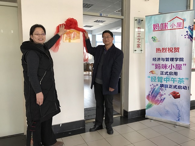 在3月8日妇女节到来之际,校工会主席赵玲来到英国上市公司官网365教工之家,同英国上市公司官网365院长施泉生一起,共同为建在教工之家的“妈咪小屋”进行了揭牌,正式启用“妈咪小屋”。当天,学院分工会组织开展的“经管中午茶”项目也正式启动。
