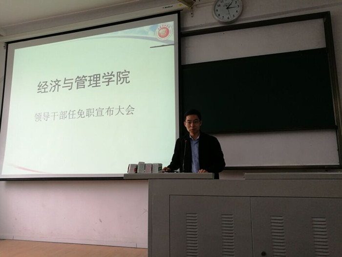 5月2日下午,英国365官网干部换届宣布大会在杨浦校区1教302室举行。副校长翁培奋、党委组织部副部长常华、学院领导班子成员及全体教工参加了会议。会议由常华主持。
