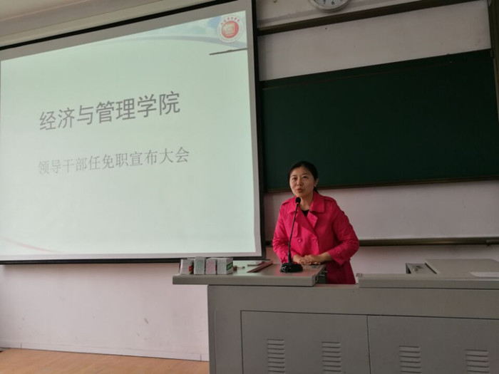 丛亮作为留任班子成员发言,她首先感谢了上一届班子的党政领导对学院发展作出的贡献,表示将会在新班子党政领导的带领下继往开来,为继续建设温馨和谐的美丽经管而努力。