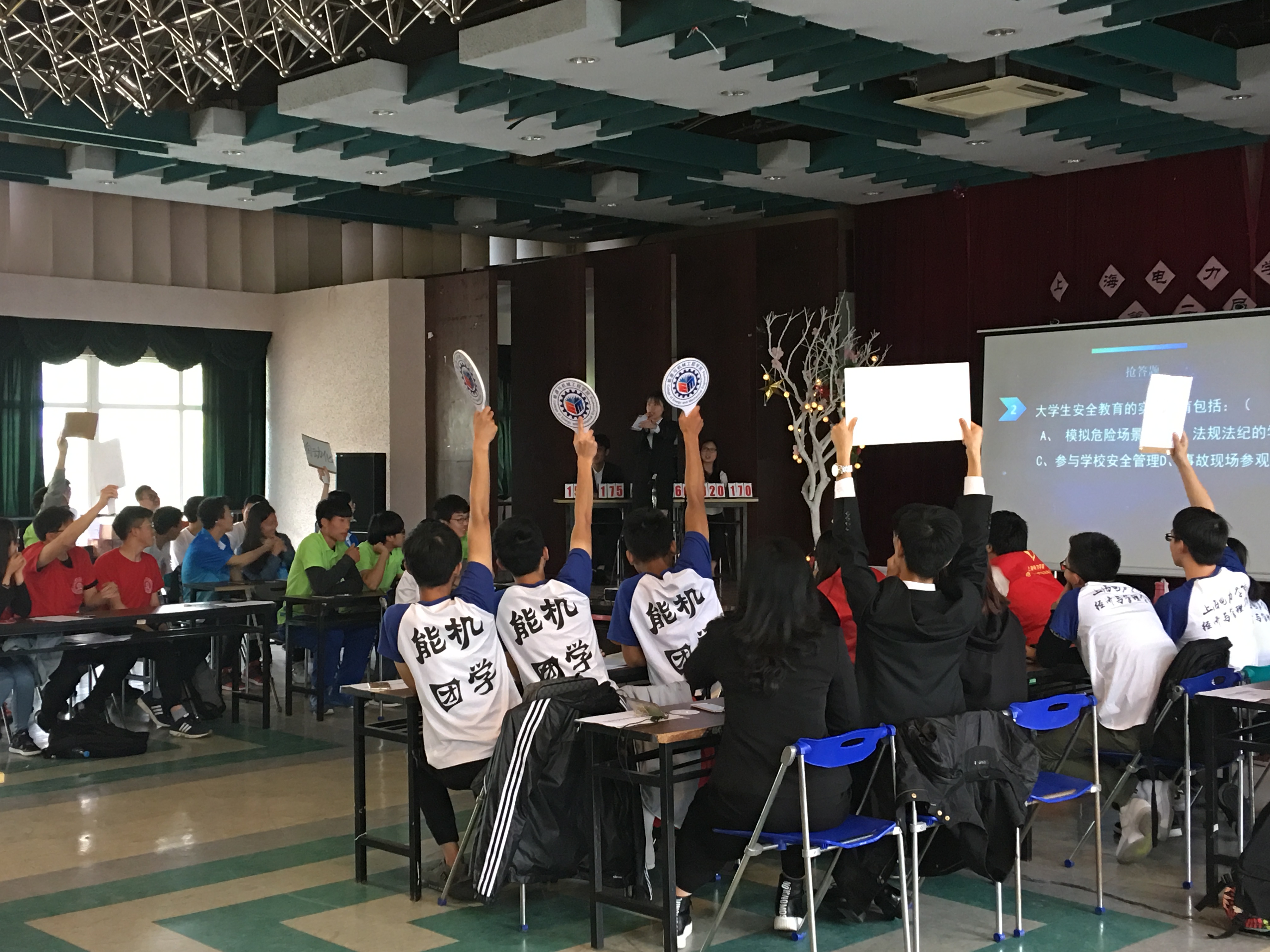 比赛分个人必答题,集体必答题,抢答题,风险题和主观题五个环节进行,题目内容涵盖消防安全、交通安全、网络信贷、寝室隐患等方面。整个比赛一气呵成,亮点频出,在比赛的同时也为在场的师生进行了一次安全知识的普及教育。经过5轮激烈角逐,能机学院以287分拔得头筹,电信学院和数理学院紧随其后,分列二三名。张浩同学,陈思远同学和王康同学因在比赛中出色的表现获得了比赛的个人优秀奖。