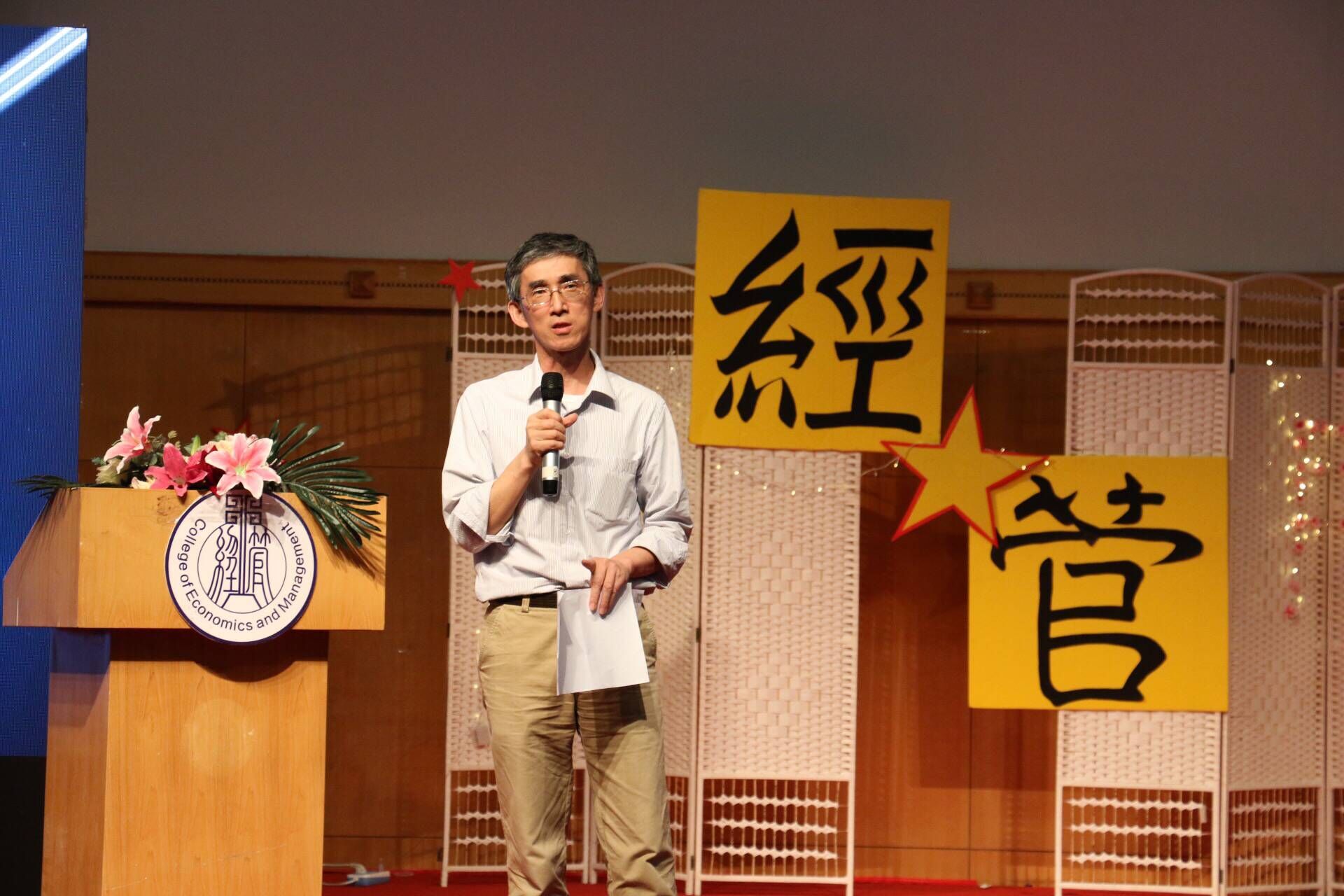 表彰大会分为“赋”--经风采、“比”--经积淀、“兴”--经展望三个篇章,借鉴《诗经》的写作手法,融合获奖表彰、优秀展示、引领表演等内容展现优秀的集体和个人。将表彰和访谈、演讲相结合,特设多种形式的榜样展示环节:由科创、学习、学生工作和志愿者服务方面的优秀代表分享经验;由五四特色团支部代表展示奋发图强、团结向上的支部风采;由五星级、文明寝室带来《寝室四重奏》展示文明和谐、积极进取的寝室文化。将大会与学院、学校的重点工作相结合:结合征兵工作特邀2016退伍学生代表带来《军梦》,展现青年学子携笔从戎、保家卫国的飒爽英姿和远大胸怀和;与“书香经管”建设相结合带来《古今诗韵》好书推荐。大会注重思想引领紧密结合育人中心工作,融入生涯规划教育、生活习惯教育、励志教育、责任意识教育等元素,情境模拟大赛获奖作品《再见吧,拖延症!》激励同学们告别拖延、寻求更好的自我;独具专业特色的表演赛《致经管》表现出经管学子的责任和担当;学院分团委副书记张帆同学带来大学生涯规划的TED演讲,启发广大学生关于生涯规划的思考。