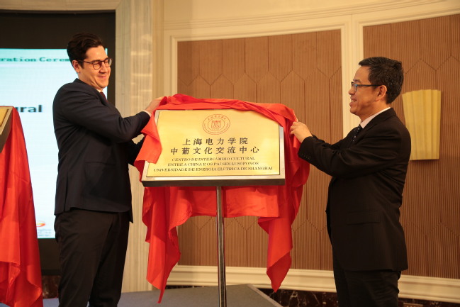 随后,李明福和江苏中天科技集团童姜兵先生共同为“上海电力学院‘一带一路’能源电力海外挂职实训基地”进行揭牌;李和兴和葡萄牙领馆领事代表Dimitri Ribeiro先生共同为“上海电力学院中葡文化交流中心”揭牌。基地和交流中心的挂牌成立搭建了我校进行国际交流平台、拓展国际交流的机会。揭牌仪式由论坛主席、校党委副书记李艳玲主持。