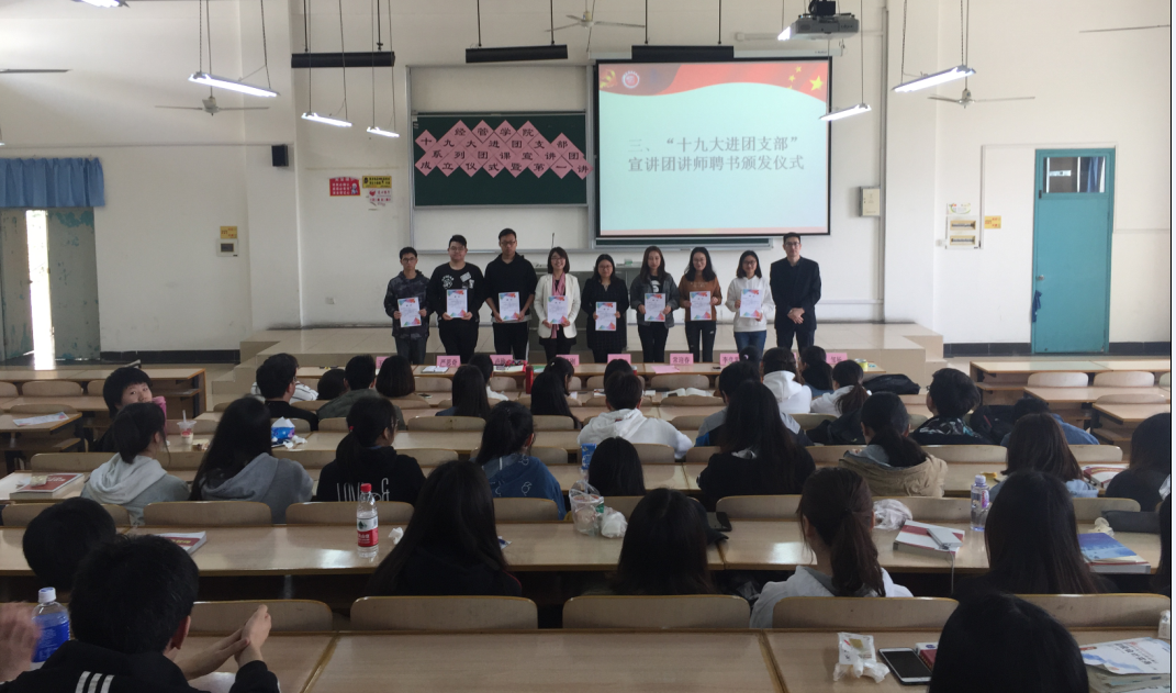 成立仪式中,周维刚对支部的青年学子提出了殷切的希望,希望经管学子要仰望星空,心怀理想,艰苦奋斗,勇于担当,争做新时代的优秀青年;嘱咐同学们铭记自己是经管人、是电力人、是中国人,不断砥砺前行,主动承担历史赋予的责任。为宣讲团成员颁发聘书,期待“十九大进团支部”系列团课能够营造学习宣传贯彻党的十九大精神的良好氛围,用“学生讲、学生学、讲学互动、以讲促学”的自我学习教育机制更好理解帮助习近平新时代中国特色社会主义新思想。