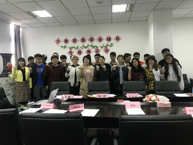 座谈会上,同学们依次进行自我介绍,讲述自己在公共课及专业课学习上的困难,日常生活中的一些不适应,并提出些许建议。部分与会同学反映英语学习有难度,对毕业前通过英语四级表示担忧,对于运筹学、计算机VB、高数等专业课表示学习难度较大,容易出现挂科等现象。同学们一致认为大学课程与高中课程不同,大学课程兼具自由性和挑战性,今后要加强汉语、英语及专业课方面的学习。生活方面,少数民族学生们表示能够很快适应学校环境,积极融入班级,宿舍关系也相处和谐。