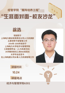 英国365官网18届毕业生徐浩,现就职于上海电力建设有限责任公司人力资源部。作为本次的主讲嘉宾,他介绍了自己从大学生活到备战考研再到求职探索的成长之路,讲述了自己在所属的公司岗位去创造价值的过程与自己收获过程的自我成就感,他鼓励同学们大胆尝试,为自己的未来而迈进坚实的步伐。此外,他以自己多年人力资源工作的从业经验,在求职方向、能力提升、素质培养等方面和同学们展开了深入的交流。