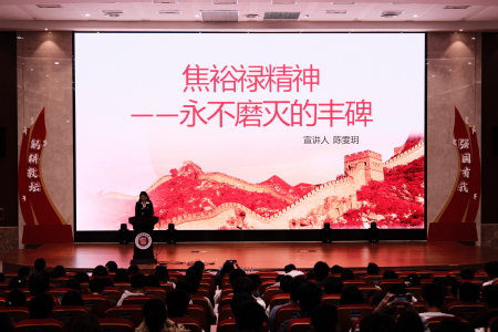 最后鸿雁宣讲团成员工商管理系学生党支部陈雯玥进行了理论宣讲,以优秀党员焦裕禄同志的故事为新生们展现了其永不磨灭的精神丰碑,鼓励大家在思想,行动上结合时代要求传承焦裕禄亲民爱民、艰苦奋斗、科学求实、迎难而上、无私奉献的伟大精神。