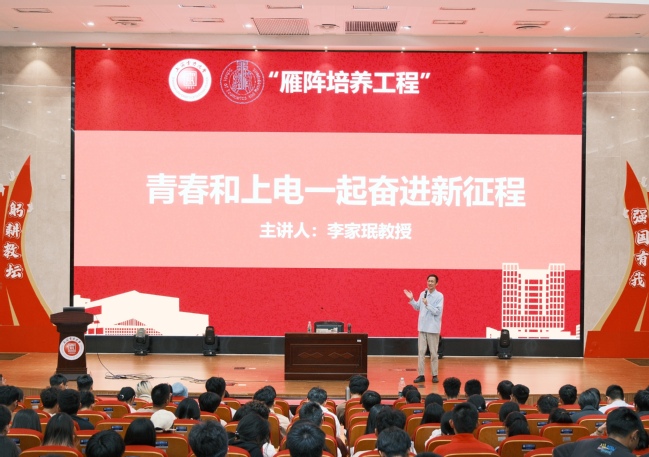 家珉围绕着学校“务实致用,明理致远”的办学理念,讲述了上电的发展史,学校始终秉持“立足电力、立足应用、立足一线”的办学特色,回顾了七十几年以来学校筚路蓝缕、薪火相传的办学历程。随后,以六座桥的文化内涵为主线讲述上电发展的里程碑事件,以声情并茂的表达方式、鲜活的案例,带领大家深入了解校园,感知校园丰富的文化内核。他指出,上电是一所发展中的大学,同学们要坚定理想信念,不断磨练意志,将课堂中的学习和生活中的实践结合起来,不断提升能力,不断发展自我。