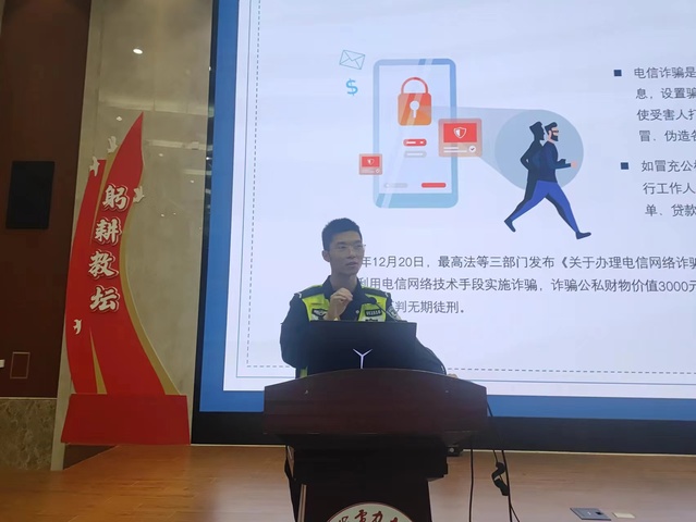 讲座中,夏斐首先向同学们明确了电信诈骗的定义。详细分析了新形势下电信诈骗的演变趋势。他指出,随着科技的发展和社会的变化,电信诈骗的手法也在不断翻新和演变。其次,他让学生们提出对于防范电信诈骗的看法和问题,并针对每个问题进行了详细的解答和指导。他强调,防范电信诈骗不仅需要学校的教育和引导,更需要每位学生的积极参与和自我保护。最后结合真实的案例导入、向广大师生详细介绍了仿冒身份、刷单类、网贷类、杀猪盘类、杀鸟盘类、木马病毒类、裸聊类等欺诈的骗术,通过深入浅出的讲解,全方位、多层次的进行防诈骗宣传,为广大师生上好反诈“开学第一课”。