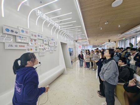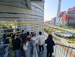随后,师生来到了“杨浦滨江党群服务站·杨树浦驿站”,学习了解了杨浦从“工业杨浦”到“知识杨浦”再到“创新杨浦”的转型升级之路,身临其境地感受到杨浦从“工业锈带”到“生活秀带”的华丽变迁。最后,一行人来到了“杨浦滨江党群服务站·电站辅机厂站”,电站辅机厂站坚持以党建引领为主线,深化传承杨浦红色基因深厚底蕴,采用“移动屏”等技术手段,融合展现了杨浦百年工业、百年大学、百年市政“三个百年文明”发展历程。师生们在服务站还体验了互动装置,通过滨江客厅虚拟现实骑行自行车,身处室内纵览滨江沿线全景,感受现代科技的无限创意。通过参观杨浦滨江的党群服务站,让师生们切身体会到了“人民城市人民建、人民城市为人民”的建设理念。