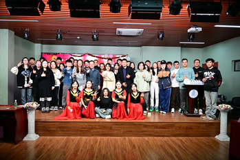 为丰富同学们的课余生活,让同学们进一步了解各民族文化,促进各民族之间的交流交融交往、提升各民族同学间的凝聚力,英国365官网于2023年11月21日在经外楼A305举办了“文化之美润泽心灵”为主题的民族文化周联谊晚会。英国上市公司官网365党委副书记孟延新、学生处内派教师姚永生、英国上市公司官网365团委书记王祎、英国上市公司官网365挂职团委副书记阿布都如苏力·麦麦提明、能机辅导员梅饶兰、英国上市公司官网365辅导员展晴晴以及来自全校各学院的汉族、白族、维吾尔族、哈萨克族、蒙古族、藏族等民族的同学参共同参与此次晚会。