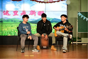 紧接着大家共同欣赏维吾尔族吉他独奏歌曲《为你而来》、双人弹唱表演《这里是新疆》,这些热情洋溢地表演将在场的师生沉浸在美妙的民族文化里。“抢板凳”游戏环节和吉他歌曲更是将活动又推向新高潮,使参与活动的同学们对民族歌曲文化有了更深的认识。