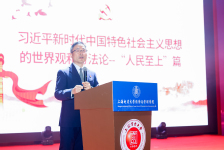 在本次表彰大会上国网上海市电力公司党群高级专家周大鹏老师送课上门,为现场同学们开展了一堂题为《习近平新时代中国特色社会主义思想的世界观和方法论--“人民至上”篇》的宣讲,带领经管学子穿越历史,告诉大家要牢记习近平新时代中国特色社会主义思想的世界观与方法论。