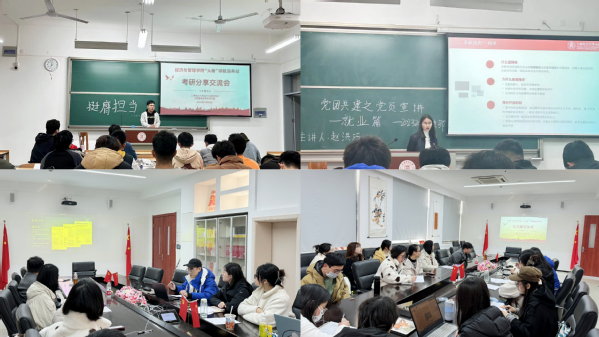 管理科学与工程系学生党支部牛健、伍佩瑶以学生工作与生活平衡、PPT展示与答辩技巧为主题做分享,从实际需要帮助同学们提升工作效率、汇报水平。应用经济系学生党支部徐嘉怡以“综测”为框架,从自身经历出发,为同学们指明前进方向。张雅婷作为校学生会执行主席,就如何提升个人学习能力、高效开展学生工作等方面做了具体分享,鼓励同学们多多参与学生工作,无悔青春。