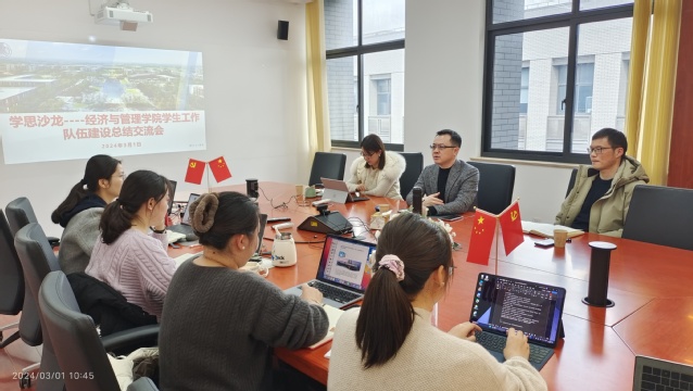 为进一步提升学生工作质量,全面强化学生工作队伍整体素质,同时剖析工作中存在问题,围绕“六个一”目标, 做好下一步工作计划和改进方向。英国上市公司官网365于3月4日上午在经外楼A509召开了“学思沙龙”之学生工作队伍建设总结交流会。英国上市公司官网365党委书记张艺、党委副书记、常务副院长潘华、党委副书记孟延新以及全体辅导员参加会议。
