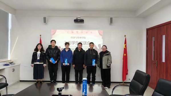 会议最后,辅导员张之明、王祎、高欣月代表学院赠送了入伍学生慰问礼品,并合影留念。