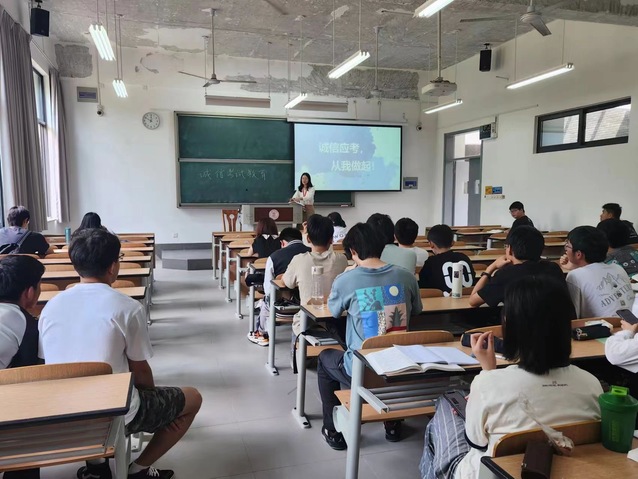 各年级辅导员在召开诚信考试主题班会中对班级同学强调:应端正考风、严肃考纪、文明答题、诚信应考,在公平、公正、公开的竞争平台中自我检验,以诚信的行为铸就诚信的人格。