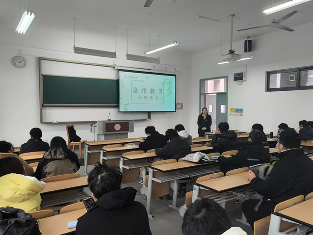 展晴晴在诚信班会中还特别邀请了专业成绩优异的同学来分享复习备考经验。郑涵月同学从制定合理学习计划、梳理知识点的技巧等多个方面娓娓道来,为其他同学提供了实用且有效的备考思路。通过学霸分享,不仅强化了学生们诚信考试的观念,也助力他们更科学地准备即将到来的考试。