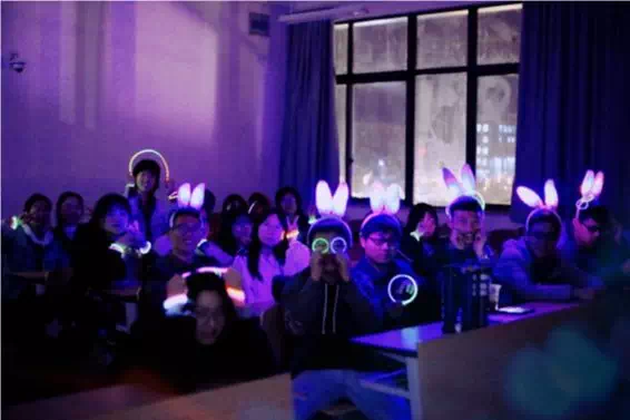 2018年11月1日晚8点,夜空中星光熠熠,跑道上荧光闪烁。30多名头戴荧光饰品,手握荧光棒的夜跑者把临港校区装点成一片五彩斑斓的欢乐海洋。本次活动以“夜奔成人礼,荧光青春季”为口号,用绚烂荧光照亮成人之路。